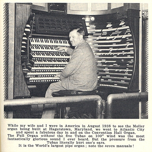 The noted English organist, Reginald Foorte, visits Atlantic City in 1938.